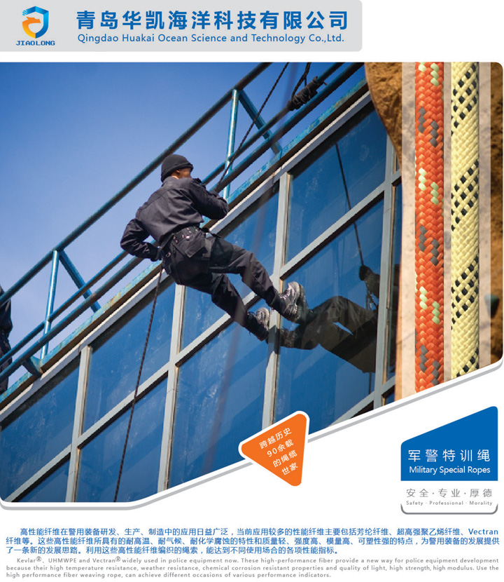 該繩纜采用先進編織和后整理技術制造,質地柔軟、便于操作、強度高、耐磨損、耐老化,適用于各種訓練、實戰等復雜環境,具有速降、救援、牽拉等多種用途。